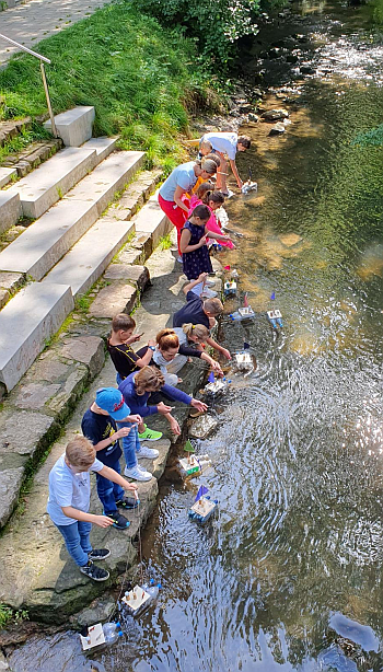 Rechts ein Bild der Kinderkirche aus August, wo kleine Schiffe auf der Ilse zu Wasser gelassen wurden. Sozusagen die Arche Noah in klein.