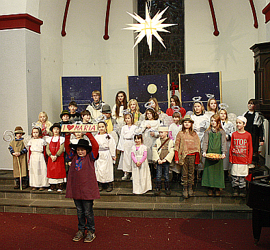 Alle Grundschulkinder sind herzlich eingeladen, beim diesjährigen Krippenspiel "Freude, Freude" mitzumachen. Die erste Probe ist am Dienstag, 12. September, um 16.15 Uhr im Gemeindehaus.