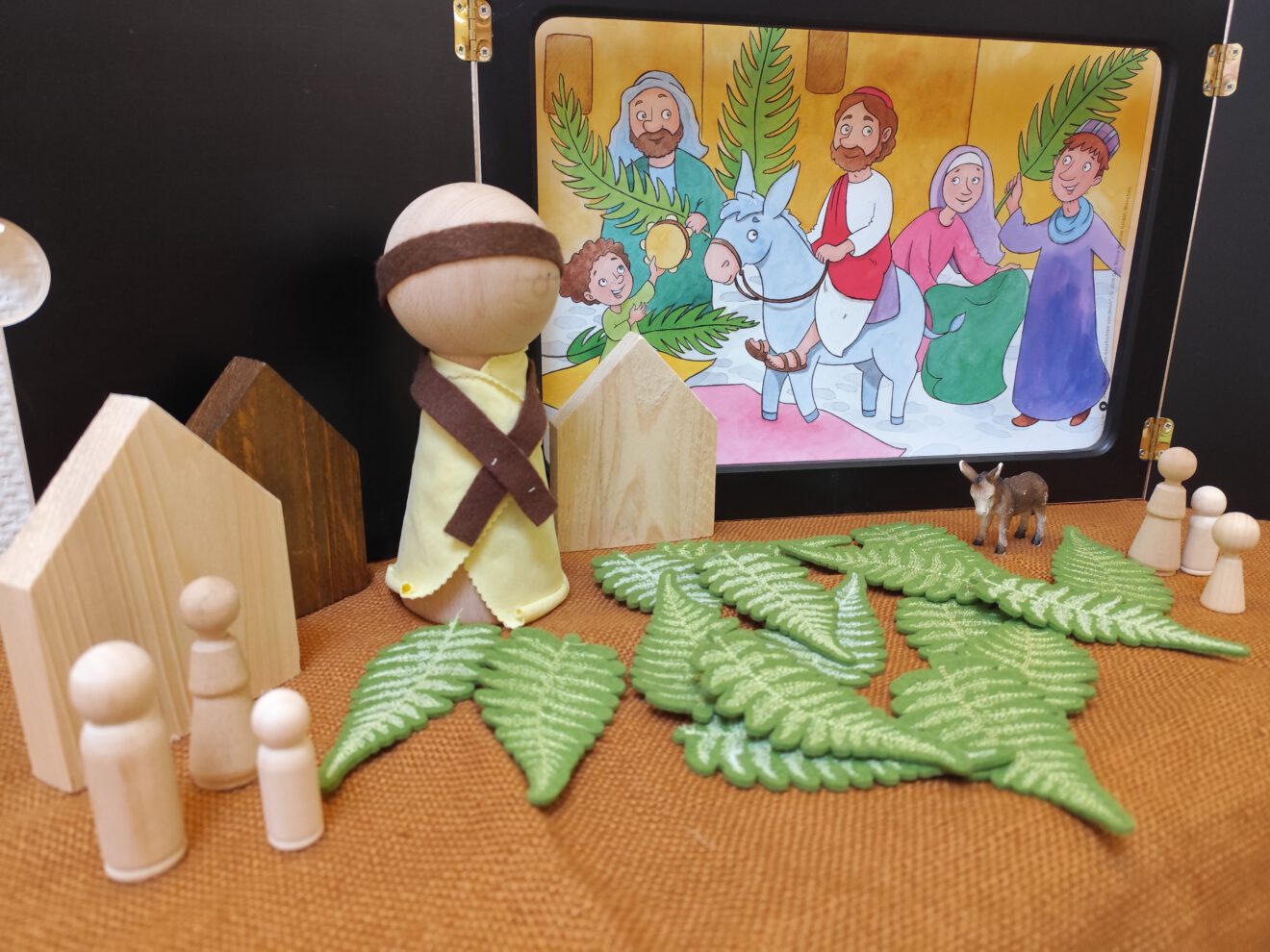 Jesus kam mit seinen Freunden nach Jerusalem, um ein Fest zu feiern. Doch einige Menschen wollten ihn nicht mehr haben. Er wurde verhaftet, obwohl er nichts Böses getan hatte, und musste am Kreuz sterben. Das war sehr traurig.