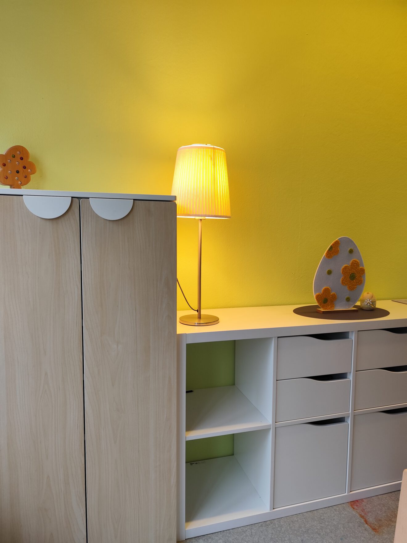 unsere Mäusegruppe ist in ihre frisch renovierten Räume zurückgezogen - und fühlt sich sichtlich wohl! Der neue grüne Anstrich sorgt für eine angenehme, freundliche Atmosphäre, in der wir uns gerne aufhalten. Auch die neuen, liebevoll ausgewählten Möbelstücke tragen zu einem stimmigen Gesamtbild bei. Der angebrachte Schallschutz an der Decke bringt eine angenehme Raumakustik.