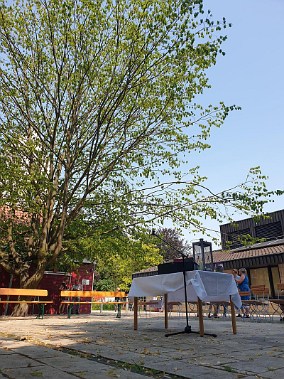 13. Juli Lieme, Ilseterrasse, zwischen Gemeinde- und Jugendhaus, schattig ;-)