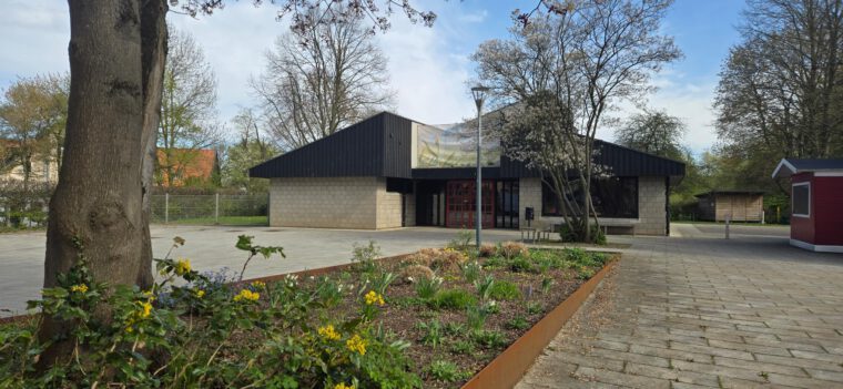Das Gebäude hat eine Nutzfläche von etwa 300 qm. Es ist im Pultdachstil errichtet. Fast alle Räume sind ebenerdig erreichbar. Ein mehrere Stufen höher gelegener Raum ist durch eine Schiebetür von dem großen Saal getrennt und kann bei Bedarf durch Öffnung dieser Tür als Bühne genutzt werden.