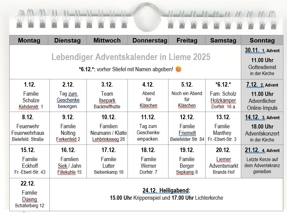 Gastgeber aus Lieme laden Sie wieder herzlich ein, sich miteinander auf Weihnachten einzustimmen.